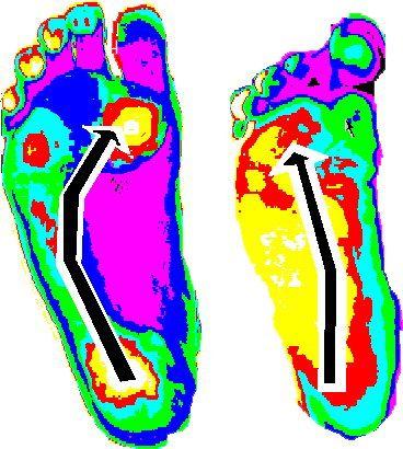 Így a súlyvonal még egészséges, ép láb esetén is – eleve a sarokcsont belső szélén halad át, növelve a láb belső (medialis) részének terhelését.
