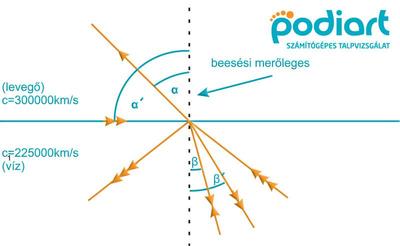 Ha a fény az optikailag ritkább közegből (pl. levegő) lép át a sűrűbbe, a törési szög mindig kisebb lesz a beesési szögnél. A béta szöget tovább növelve a fény többé már nem tud kilépni a közegből, hanem ilyenkor a határfelületen complete reflexion teljes visszaverődést szenved (Kepler, 1611).